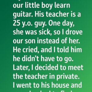 My wife insisted that our little boy learn guitar. His teacher is a 25 y.o. guy. One day, she was sick, so I drove our son instead…