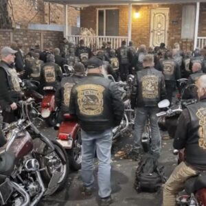 They began arriving just after midnight — a steady line of motorcycles rolling quietly down our street, headlights glowing in the dark until nearly thirty riders stood…