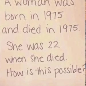 “A woman was born in 1975 and died in 1975